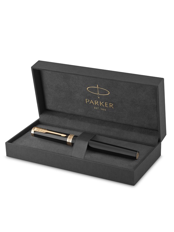 Parker Ingenuity Rollerball Pen | Core Collection | Svart med guldkant | Finpunkt med svart bläck | Presentlåda
