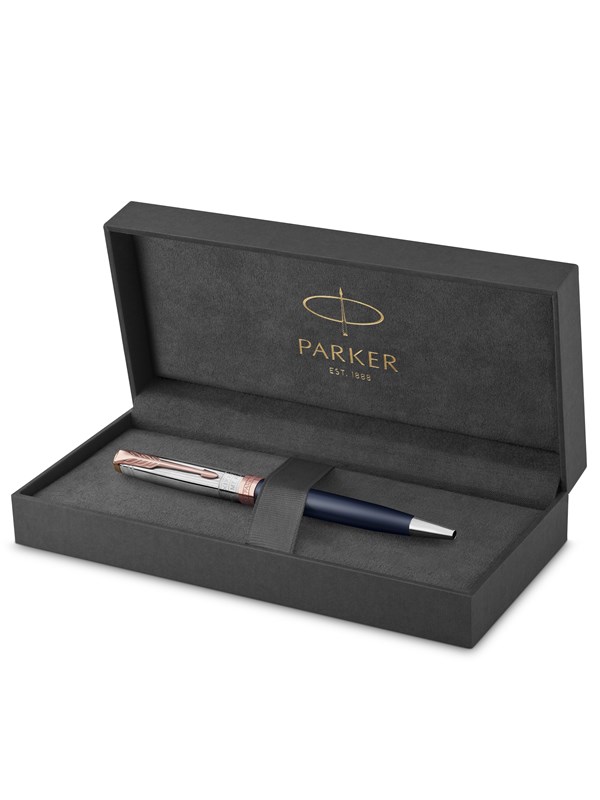 Parker Sonnet Kulspetspenna | Intrerpid Journeys Collection, Mt. Fuji Edition | Blå lack & massivt silver med rosa guldkanter | Medium punkt | Svart bläck | Presentlåda