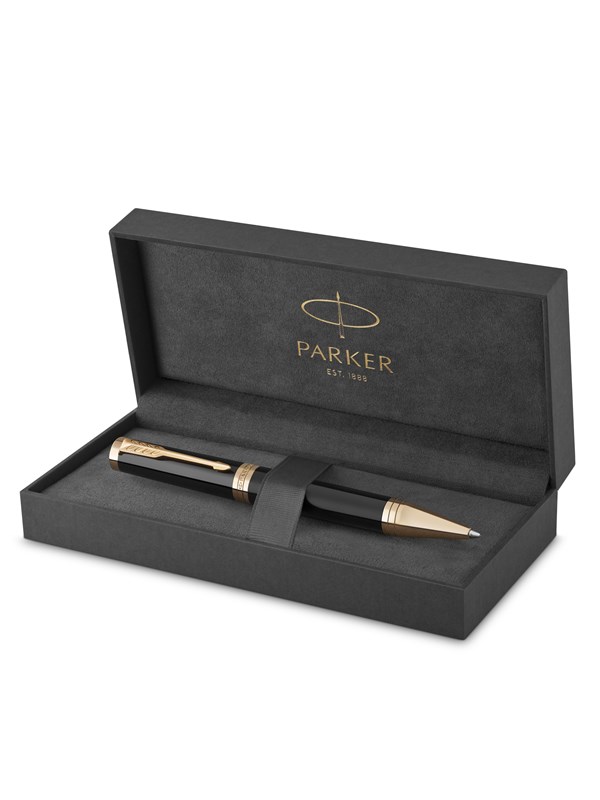 Parker Ingenuity Kulspetspenna | Core Collection | Svart med guldkant | Medium Point med svart bläck | Presentlåda