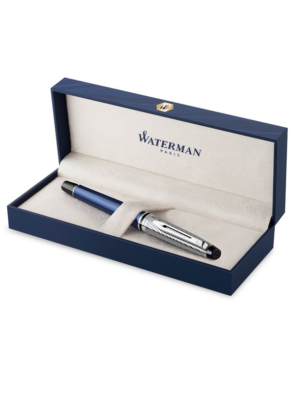 Waterman Expert Deluxe | Reservoarpenna | Metall & blå lack med palladiumbelagd trim | Palladium fin spets | Presentlåda