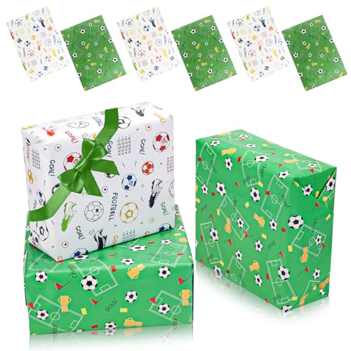 6 ark presentpapper för barn för fotboll presenter pojkar presentpapper födelsedag 70 x 50 cm med 2 rullar band levereras för fotboll dekoration födelsedag barn jul examen barnens dag