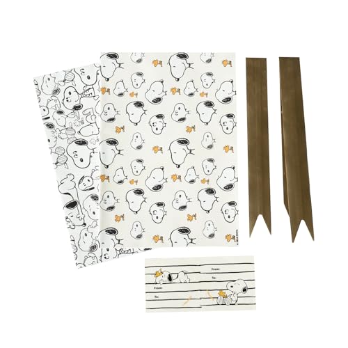 Grupo Erik Presentpappersset Peanuts Snoopy – 2 ark 50 x 70 cm med öglor och klistermärken – högkvalitativt presentpapper för födelsedag eller jul, vitt