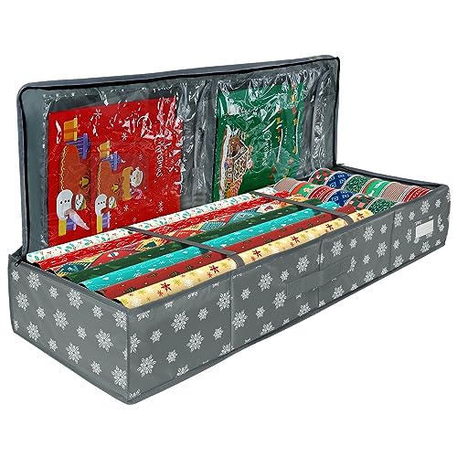 Presentpapper förvaringsväska arrangör (120 x 14 x 6 tum) med tyg för jul födelsedag presentpappersrullar tillbehör ..