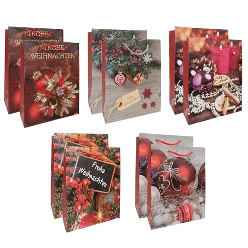 Idena 30519-10 – Presentpåsar jul, 10 stycken, presentpåsar i storlek 33 x 41 x 10 cm, papperspåsar i 5 julmotiv