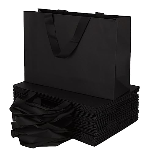GOYADA 25 st svarta presentpåsar med handtag, svart presentpåse 32 x 22 x 10 cm, svart presentpåse med handtag för jul, födelsedag, bröllop, fest