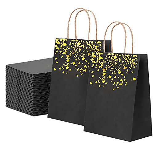 GOYADA 20 st svarta presentpåsar, 27 x 10 x 21 cm kraftpapperspåse handtag, svart papperspåse, presentpåse för jul, födelsedag, bröllop, fest shopping