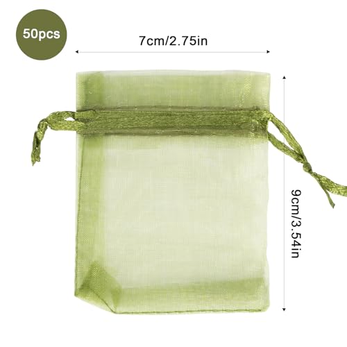 Carehabi jul presentpåsar organzapåsar presentpåse organza smyckespåse bröllop påsar lavendelpåsar bröllopsföredragning 50 stycken 7 x 9 cm grön