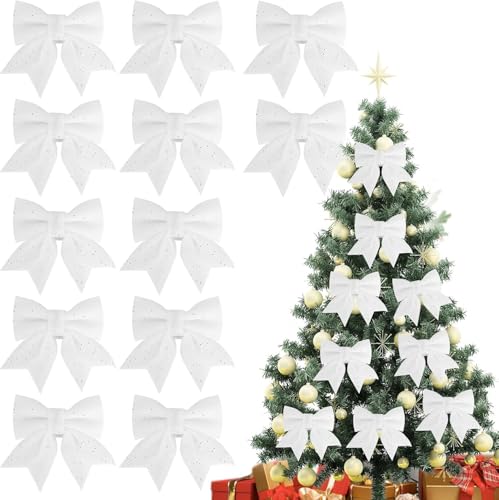 12 stycken vita julgransrosetter, 15 x 12 cm julglitter dekorativa rosetter, presentrosetter juldekoration, presentrosett, present rosetter juldekoration (vit)