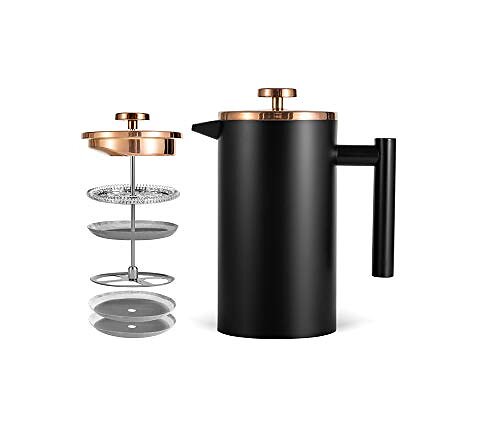 Enfmay Cafetière 8 koppar fransk press kaffebryggare, 1 000 ml 3 nivåfilter dubbelväggigt isolerat rostfritt stål fransk presskaffettiere för hem och kontor, extra 1filter och 2-i-1 klämsked
