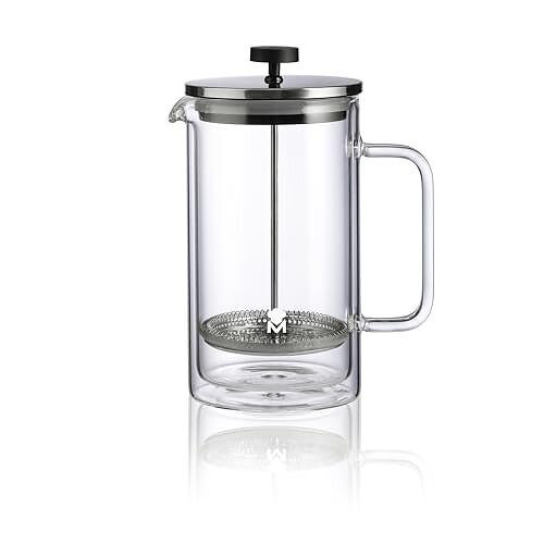 Milu fransk kaffepress | 350ml 600ml 1L | homgeek French Press Kaffeebereiter glas ersättningsfilter Kaffebryggare (svart, 1000ml (5 koppar)