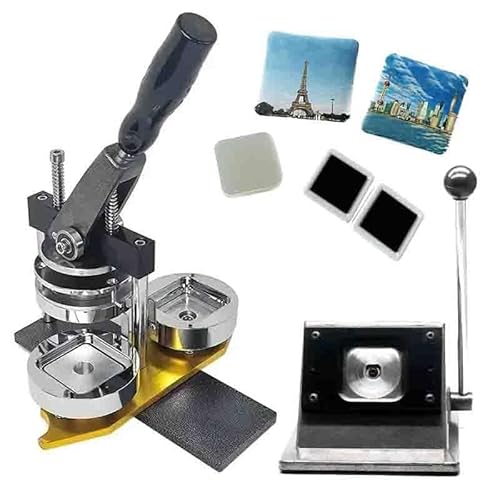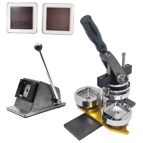 Square Badge Maker Press Machine, 50*50 Mm Cutter För Märken Med Professionell Metal Badge Maker + Papperscutter + 100 St Gör-det-själv-komponent, Kylskåpsmagnetknapp Badge-tillverkningssats För Cospl