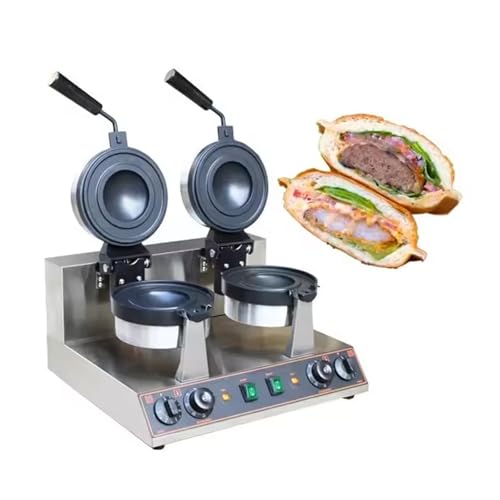 UFO Burger Maker Machine, 50-300 ℃ non-stick kommersiell Gelato Panini pressmaskin, dubbelsidig uppvärmning 5 minuters timer Hamburger Press Glass Våffelmaskin