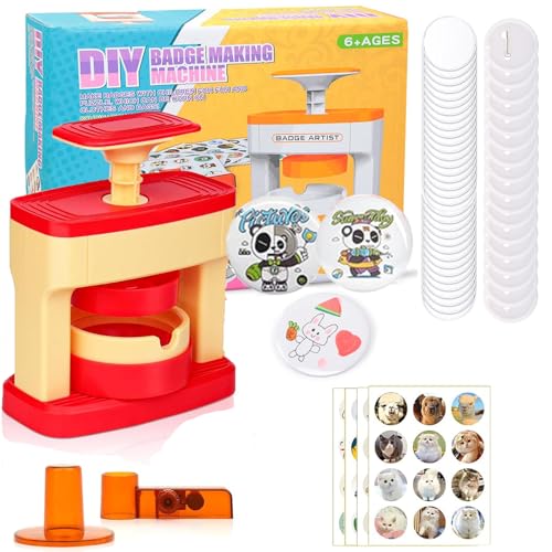 Rntfunre Button Maker Badge Machine 55 mm (2,16 tum) Tryck på DIY Button Press Machine Senaste Pin Badge Making Kit med 48 plastknappdelar och cirkelskärare för fester och gåvor, BM-001