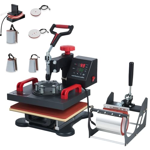CREWORKS Överföringspress 38 x 30 cm, värmepress, varmpress, 8-i-1, Heat Press Machine kopppress, textilpress, multifunktionell sublimering, värmepress, maskin 360 grader för t-shirts, muggar