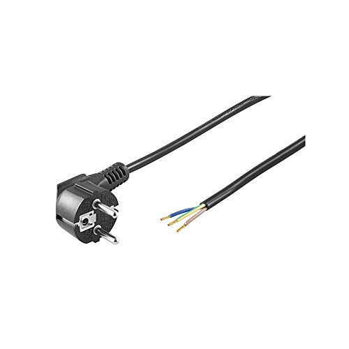 Goobay 96033 Vinklad strömkabel/öppna kabeländar och pressade ledarändhylsor/90 graders skyddskontaktkontakt/universell strömkabel/svart/3 m