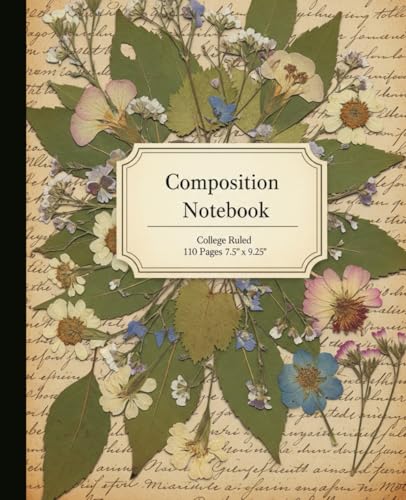 Cottagecore Pressed Flower Composition Notebook: A Vintage Botanical Journal with Dried Wildflowers on Antique Script Paper | College Ruled Notebook for Nature Lovers and Students