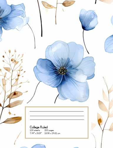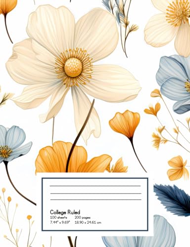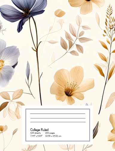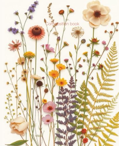 Composition book: Pressed Wildflowers Notebook | College Ruled | Elegant Journal with Botanical Ferns and Flower Design | 7.5 x 9.25 in, 100 Pages