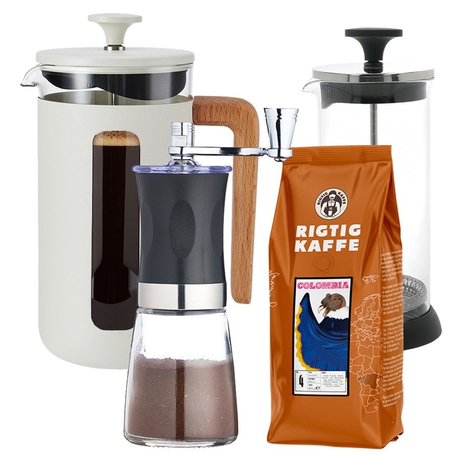 La Cafetière Pisa 8-koppars presskanna vit inklusive House of Barista elektrisk kaffekvarn och 400g Rigtig Kaffe