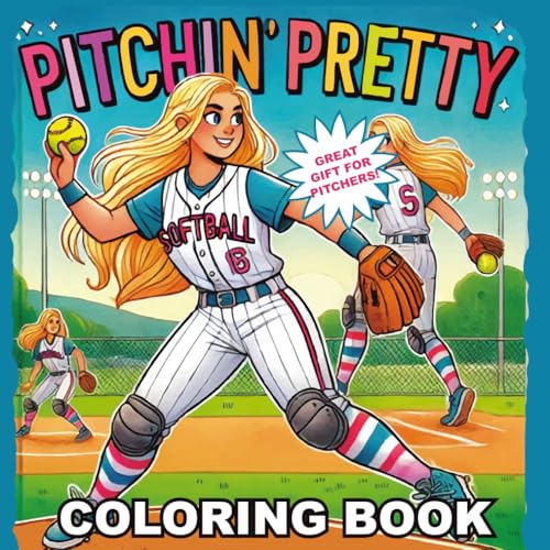 Pitchin' Pretty | Girls Softball Pitcher Themed Coloring Book: Great Action Shots, Cute Poses and More Fun for Softball Pitching | Great Gift for Girls and Teens
