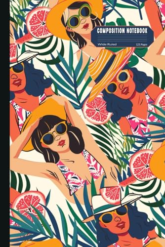 Wide Ruled Composition Notebook: Summer Vibes with Pretty Girls in Sunglasses - 6x9, 121 Pages