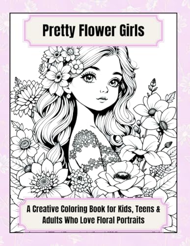 Pretty Flower Girls: A Creative Coloring Book for Kids, Teens & Adults Who Love Floral Portraits: 50 Beautiful Pages of Floral-Themed Girl Portraits to Color and Enjoy