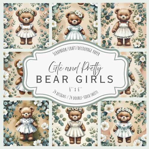 Cute and Pretty Bear Girls: Scrapbook, craft, decoupage paper, 24 designs, 24 double-sided sheets, 6'' x 6''