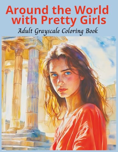 Around the World with Pretty Girls: Adult Grayscale Coloring Book for fans of travel, fashion, and fine art alike. Designed to Inspire Relaxation and Creativity