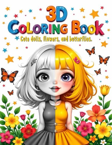 3D Coloring Book : Cute dolls, flowers, and butterflies.: Pretty Girls and Princesses with Fun and Trendy Outfits to Color for Tweens and Teens | 50 Unique 3D-Style Designs.