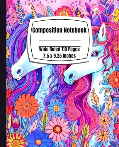 Composition Notebook Wide Ruled 110 Pages: Cute Unicorn, Aesthetic Preppy Notebook for Kids, 7.5 X 9.25 Inches Wide Ruled, beautiful Unicorn, School ... 110 Pages, Colorful Pretty Unicorn for Girls