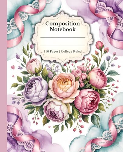 Coquette Floral College Ruled Composition Notebook for Girls: Pretty Pastel Peony & Bow Aesthetic, 7.5x9.25 in, Cute Feminine Vintage Style, Ideal for Middle School, High School, and College Students