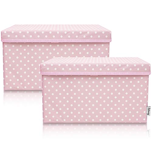 LIFENEY 2 set förvaringslåda för barn (37 x 25 x 21 cm) I Förvaringskorg för barnrum och vardagsrum I barnförvaringslåda (rosa prickar)