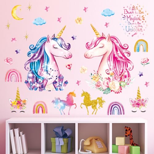 DECOWALL DS-8049 Magiska enhörningar väggklistermärken barn väggtatuering barnrum dekor dra av och klistra fast avtagbar regnbåge stjärna flicka prickar häst