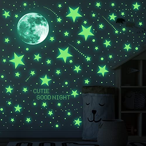 ECHOCUBE Lyser i mörkret väggklistermärken, 637 st Lysande prickar stjärnor och måne DIY-väggklistermärken för tak eller väggar, lysande limklistermärken för barn sovrum vardagsrum dekoration