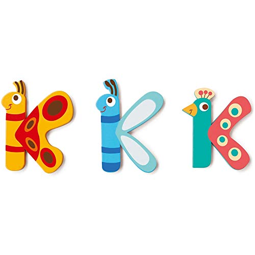 SCRATCH Alla andra möbler, dekoration och förvaring för barn SCRATCHScratch Deco: Trä bokstav 'K', 3 asstd, stilar, 3 lim prickar ingår, på kort, flerfärgad (mer än ett)