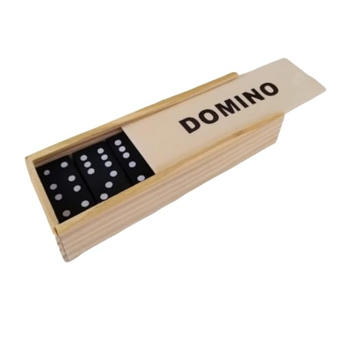 Globly Domino Classic Domino-set i trälåda med 28 svarta plastplattor med vita prickar | Brädspel för barn och vuxna, familjer och vänner