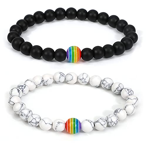 FOGARY Gay Pride HBT-armband (2-pack), regnbågspärlor par distansarmband, 18cm, Sten, Agat