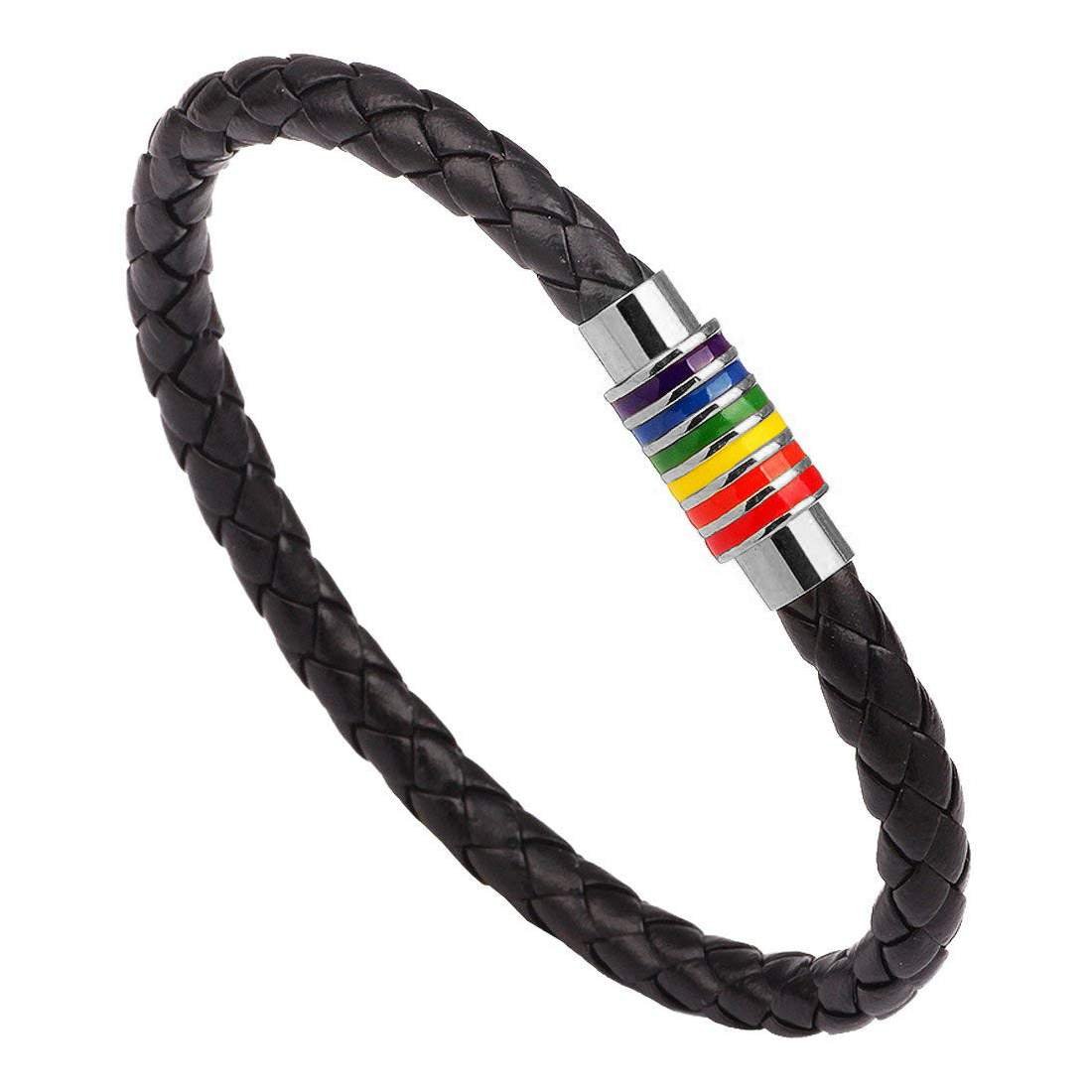 FOGARY Gay Pride armband LGBT regnbågsarmband (2-pack), par svart läderarmband herr dam armband med regnbågsrandigt rostfritt stål magnetlås 22 cm, 8.7 in, Polyuretan Läder Polyuretan Rostfritt Läder