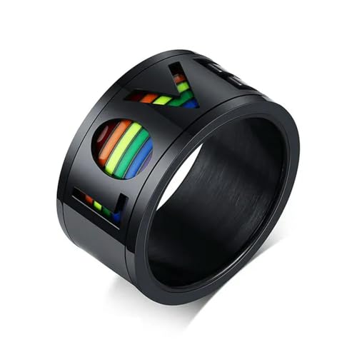 Ouruiba 8 mm romersk cifrre ring emaljerad regnbåge gay lesbisk pride HBTQ pläterad svart rostfritt stål smycken herr, Rostfritt stål