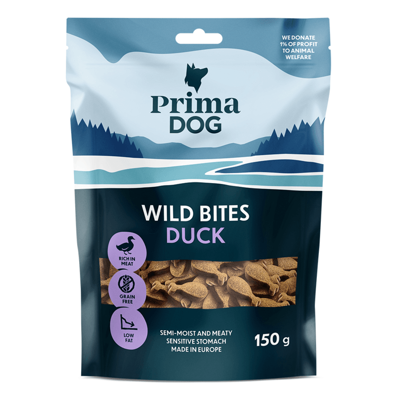 PrimaDog Wild Bites Soft Snack - Ekonomipack: Anka & solhatt (4 x 150 g)