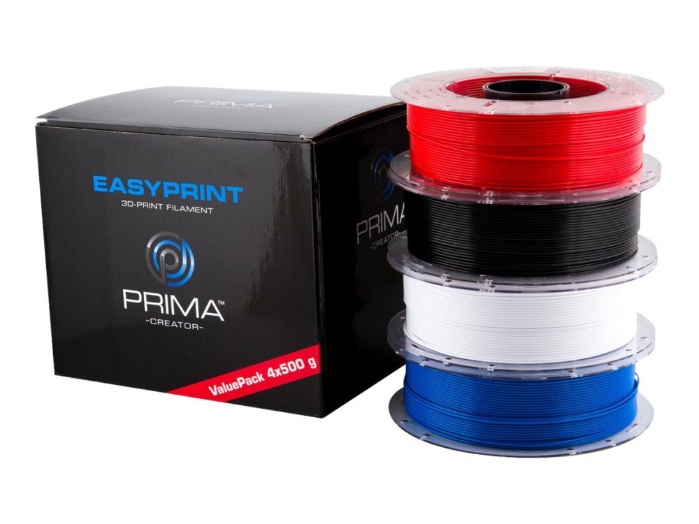 Primacreator Easyprint Pla Value Pack Standard - 4-Pack - 500 G - Svart, Vit, Blå, Röd - 2 Kg - Pla-Fiber (3D)