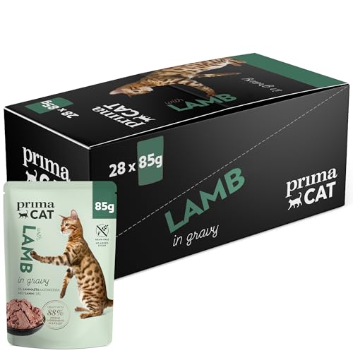 PrimaCat – klassiskt våtfoder för katter, lamm i steksås, 28-pack med 85 g vardera