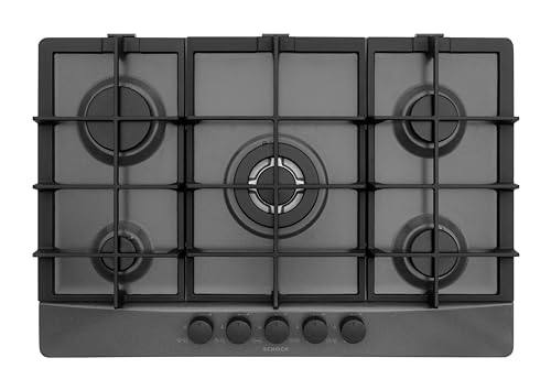 SCHOCK | 5 brännare Primus PC75 gasbrännare med mjuka ogenomskinliga svarta handtag, gjutjärnsgaller, säkerhetsventiler, asfalt, 740 x 500 mm