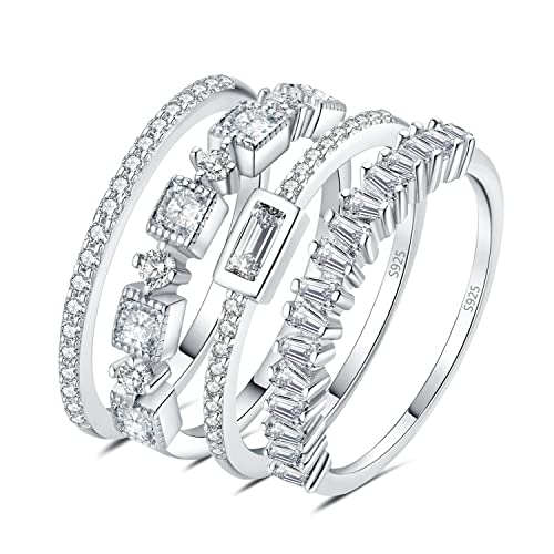 JewelryPalace Vintage Princess Cut Zirconia Ring Ring Dam, Vigselringar Silver 925 Vigselringar Stapelring Evighetsring Ringband Smal, Ringar Set Smycken 62