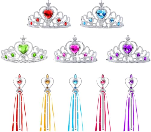 Aomig kostym, 5 st Princess Dress Up för tjejer, Princess kostym med Fairy Wand, Crown Tiara, Handskar, Halsband, Fancy Dress för Cosplay Party Halloween Jul Rollspel Maskerad