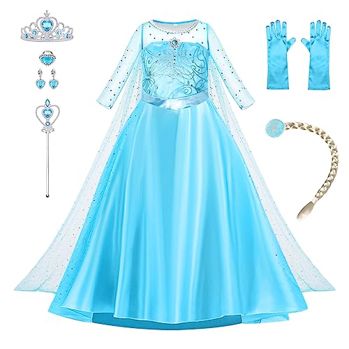 Vicloon 6st Princess Dress-Up Accessoarer för Elsa Kostym med fläta/handskar/ring/örhänge/tiara/magisk trollstav, 3-10 år