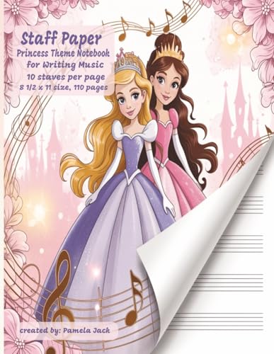 Staff Paper Princess Theme Notebook for Writing Music 10 Staves per page: Elegant Princess Music Manuscript Paper for Girls Ages 10–15 | 110 Pages of ... with Composition Log & Music Reference Guide