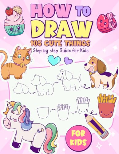 How to Draw 105 Cute Things: Step By Step Guide for Kids, Simple and Easy Drawing Animals, Unicorn, People, Mermaid, Princess, Vehicles, Aeroplane | Girls | Boys