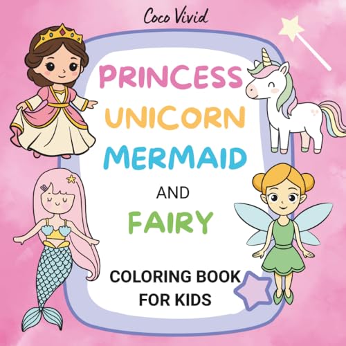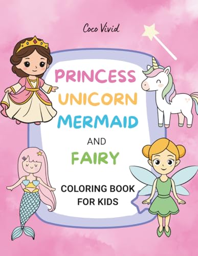 Princess, Unicorn, Mermaid and Fairy Coloring Book for Kids Ages 4-8: 50 Cute Bold Easy Pages – Dress Up & Color Crowns, Dresses, Shoes & Castles – ... Party Favors, Party Supplies & Gift for Girls