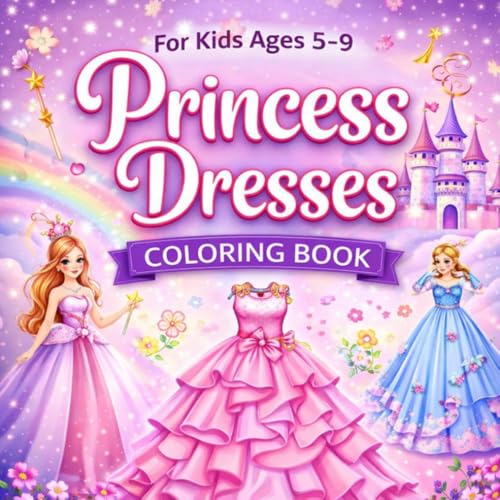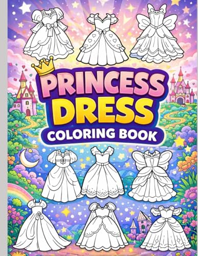 Princess Dress Coloring Book for Kids: 20 Beautiful Princess Dresses | Fun & Easy Coloring Pages for Girls Ages 5–9
