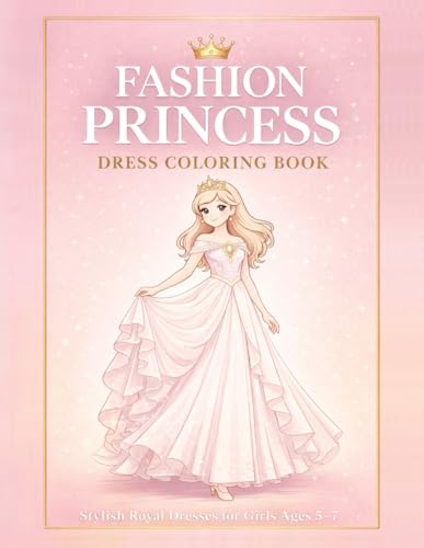 Fashion Princess Dress Coloring Book for Girls Ages 5–7: 40 Stylish Royal Dresses for Creative Kids